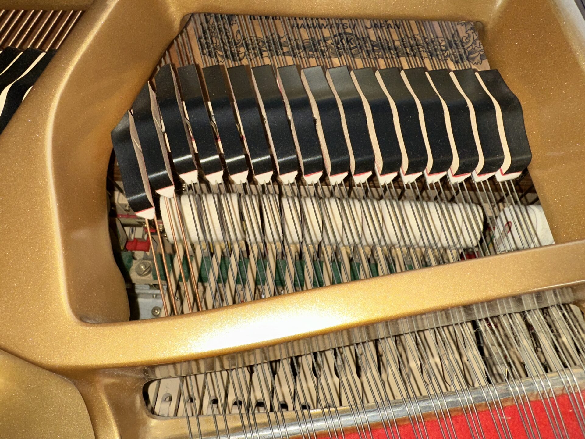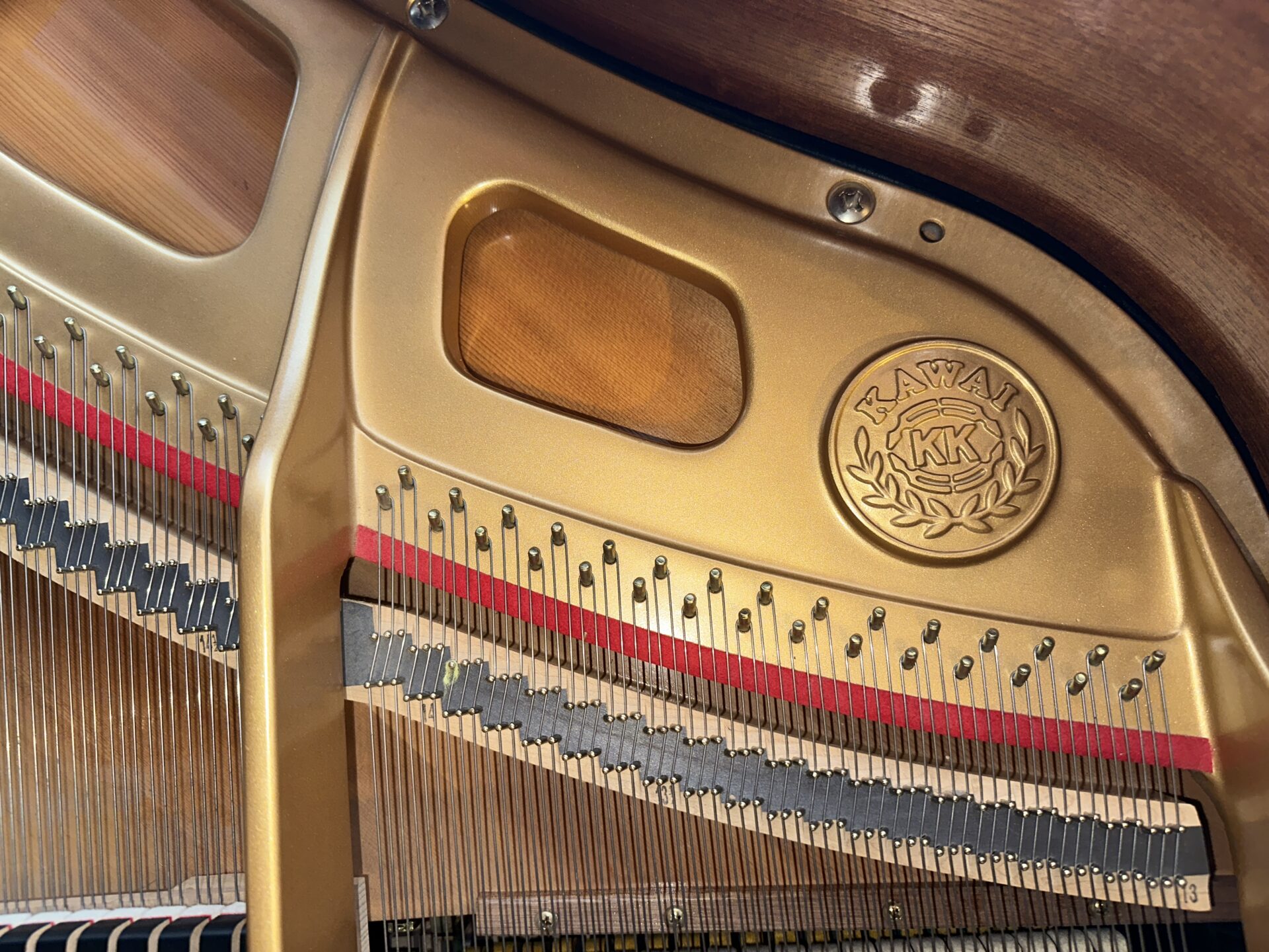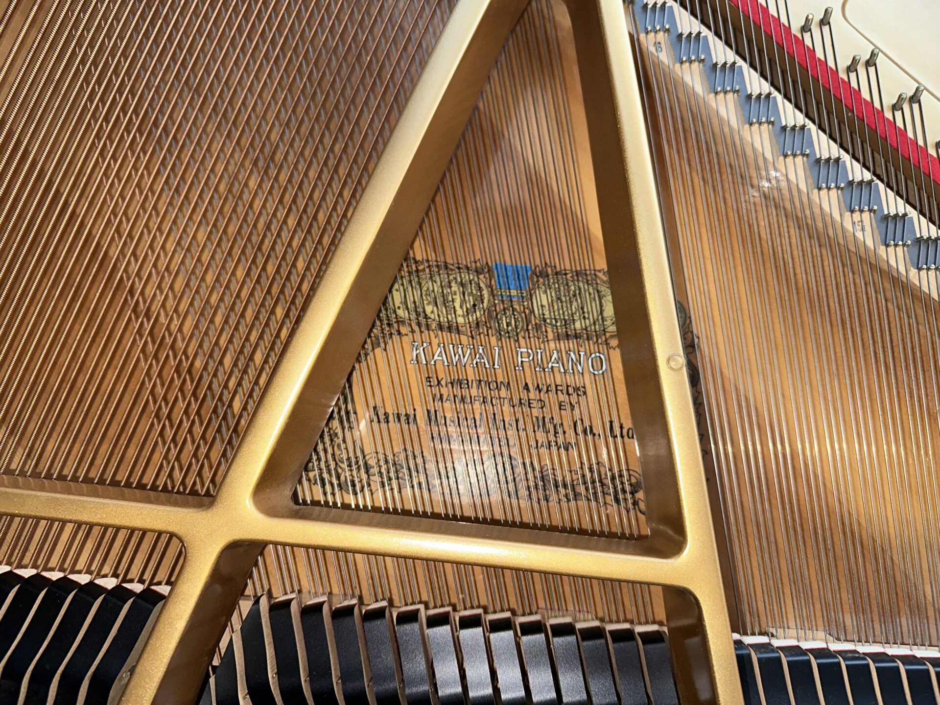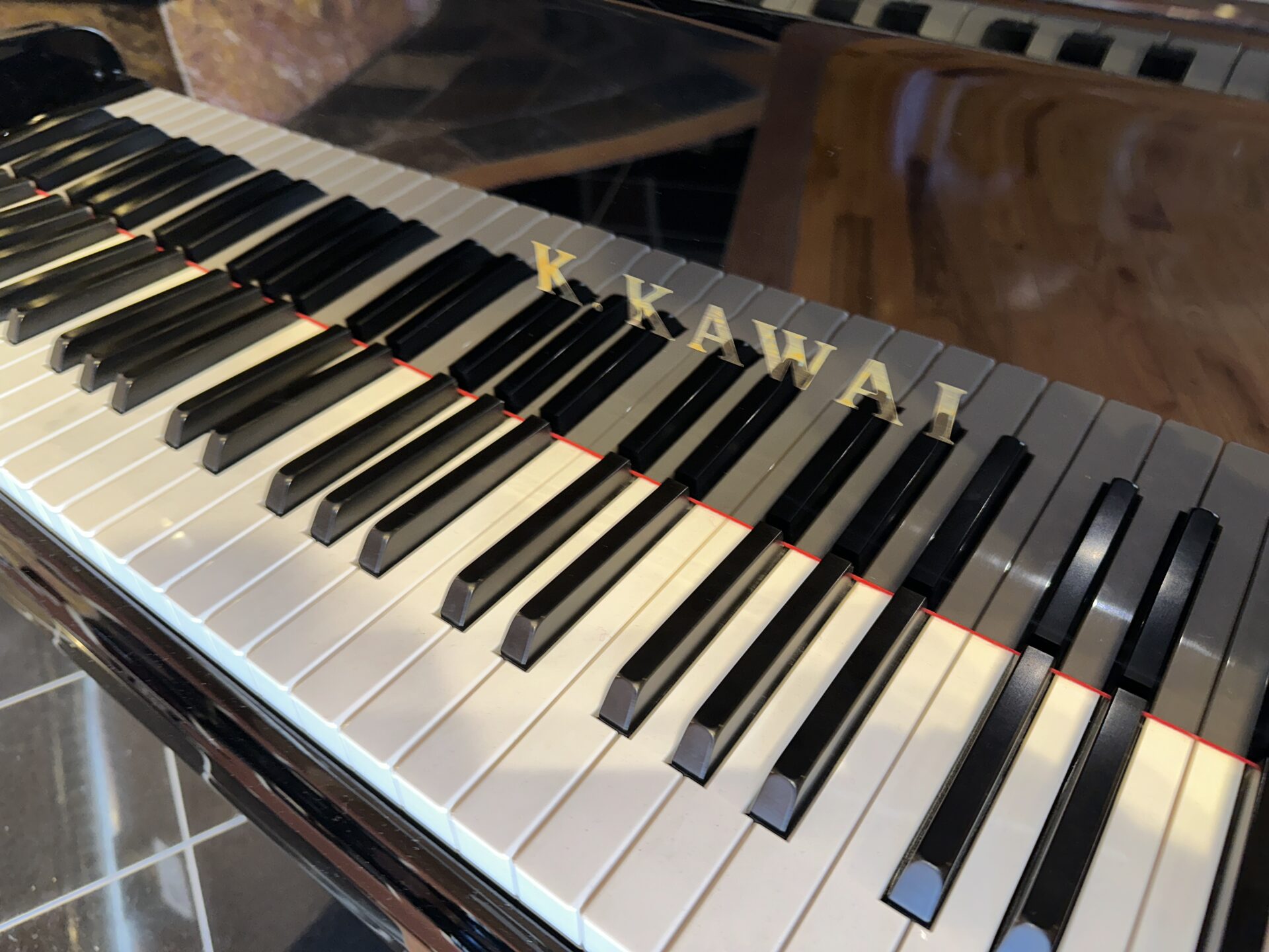 This Kawai baby grand piano is in excellent shape, the cabinet is in ebony polish finish and looks great, the action is quick and responsive to the touch and offers wide range of dynamics, the tone is rich with roaring bass and clarity in the treble.