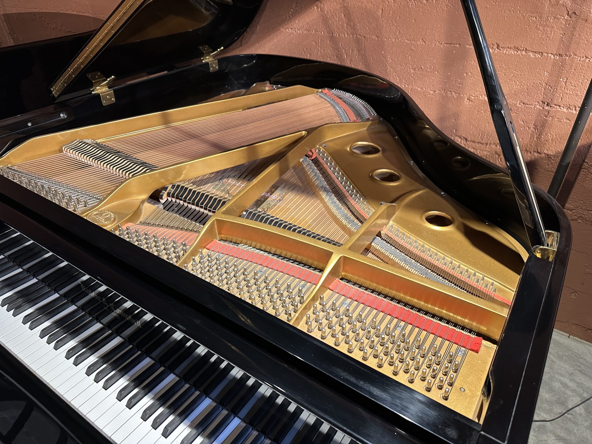 This is a very clean piano that looks and plays like a new one. The action is in great condition the keys respond accurately to the lightest touch and offer quick response. The tone is rich with deep base and clarity in the treble, it offers the player wide dynamic range. The cabinet is in the popular ebony polish finish, it looks great and is free of damage.