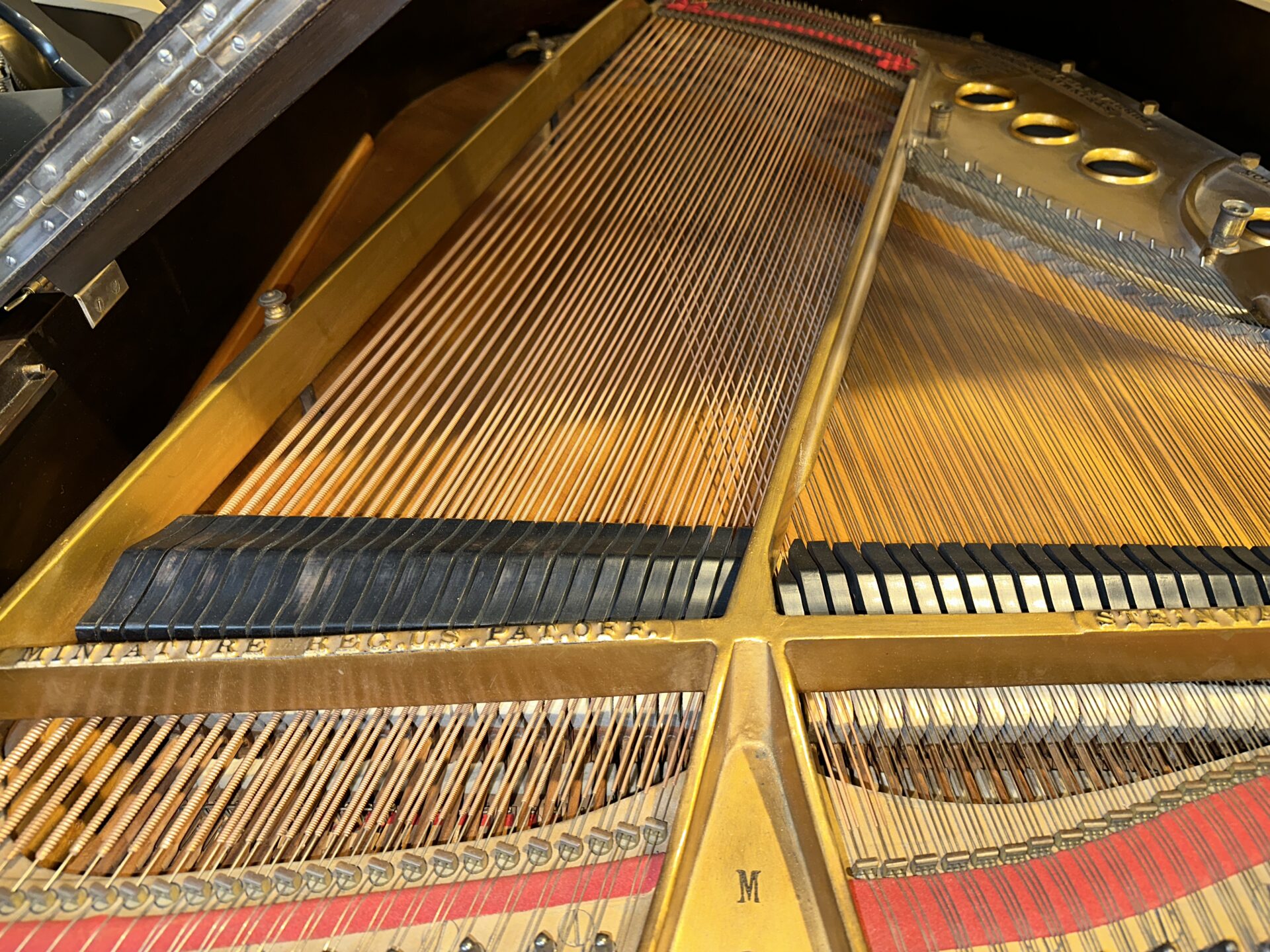 This is a clean piano in great condition, the action plays well and responds to the touch with accuracy, the tone is mellow and sweet with deep bass. The cabinet is in the mahogany satin finish and looks great.