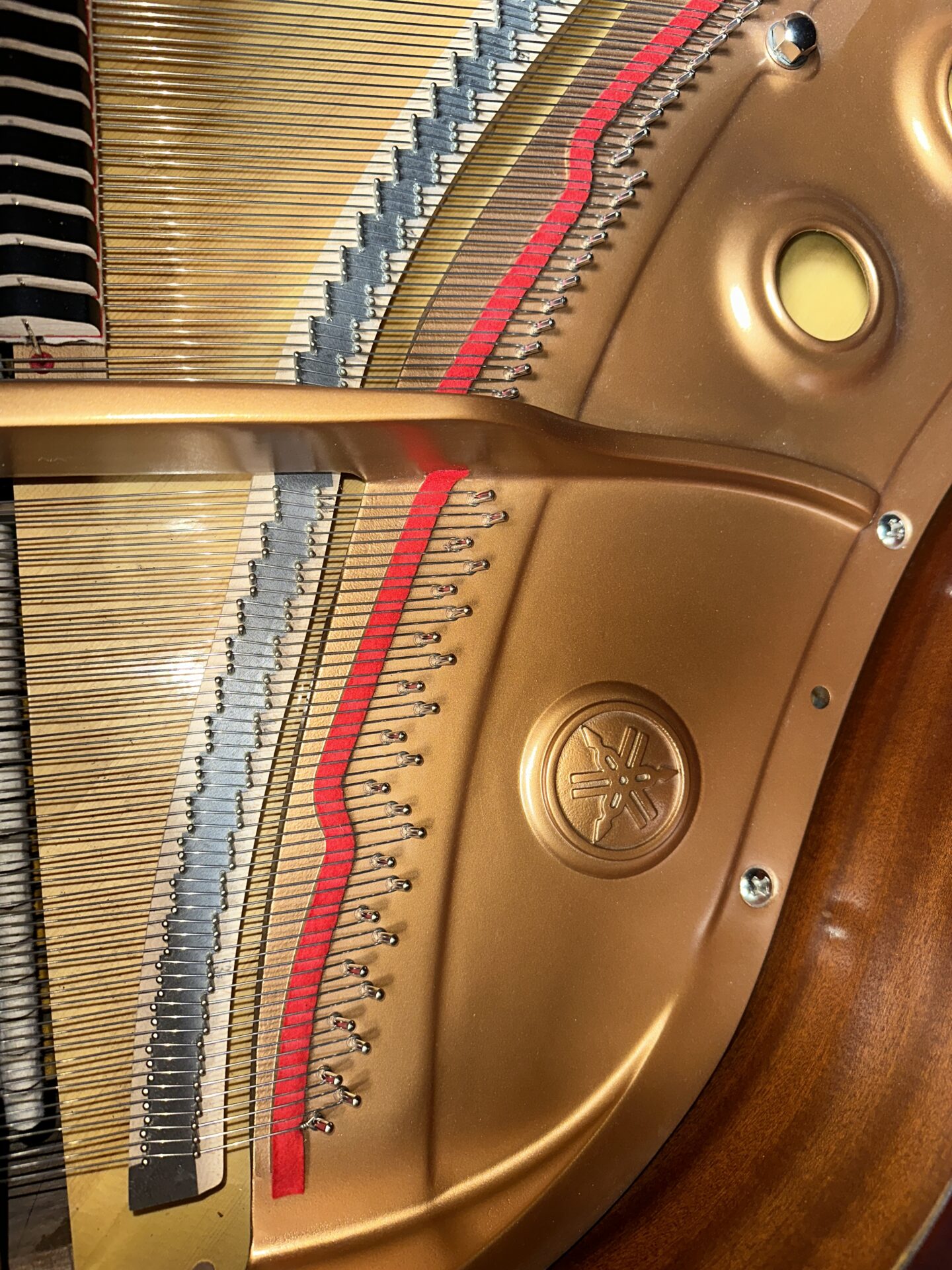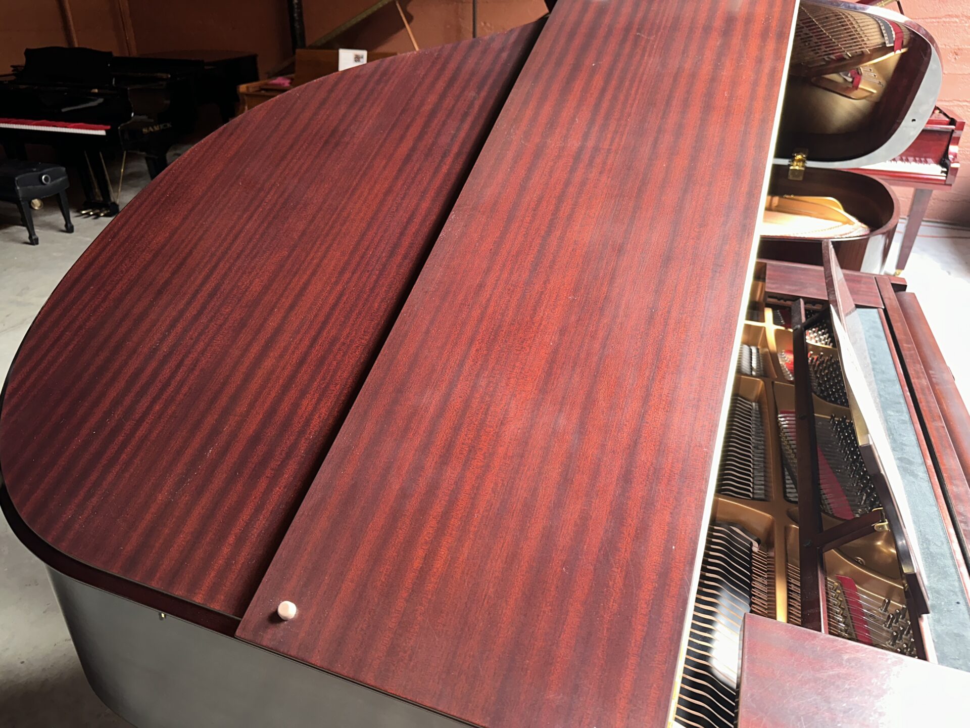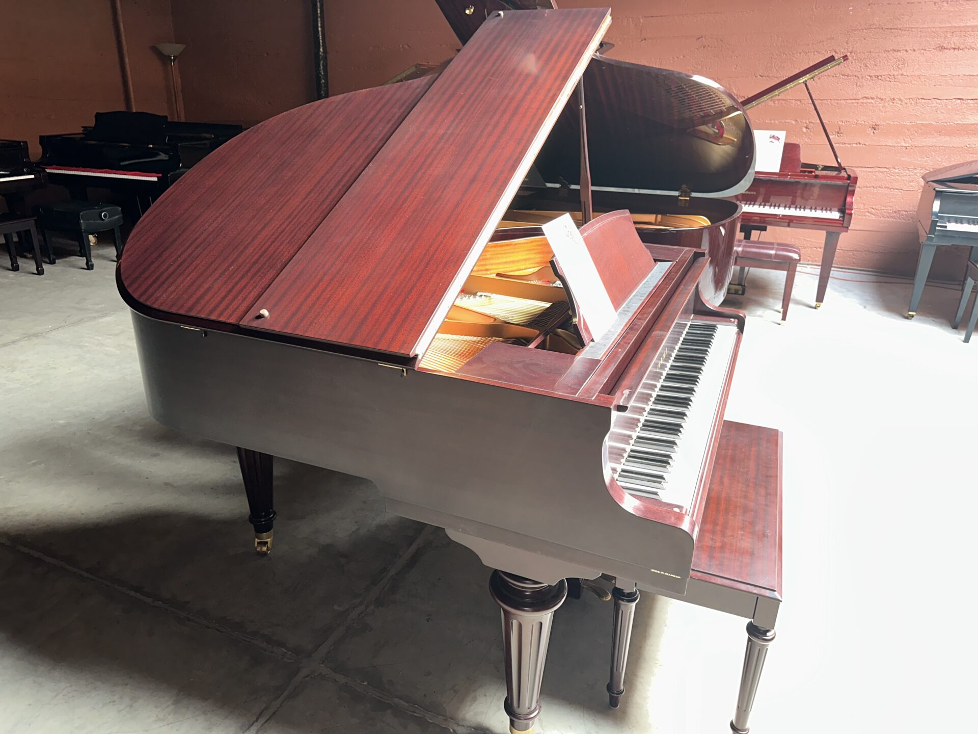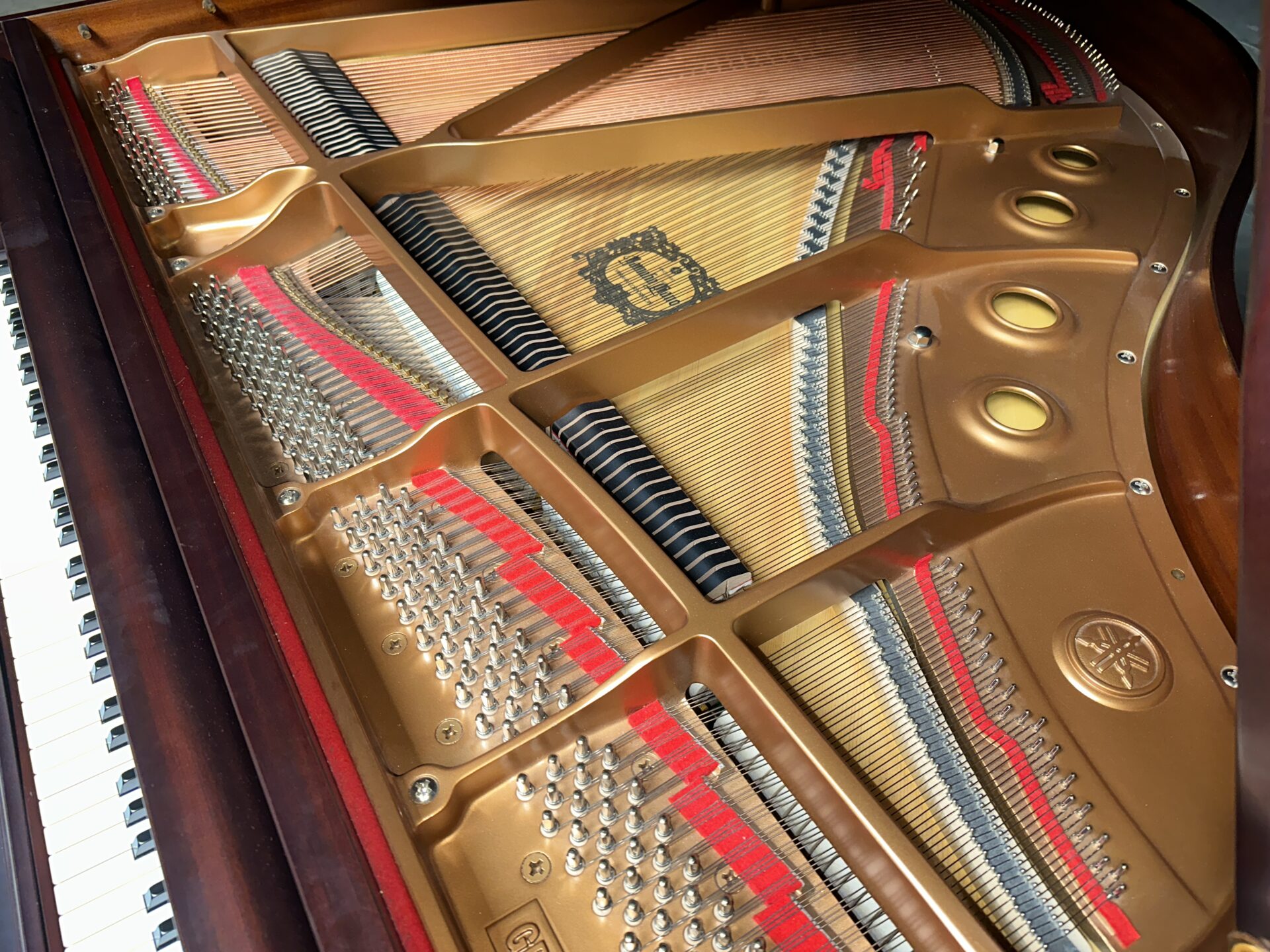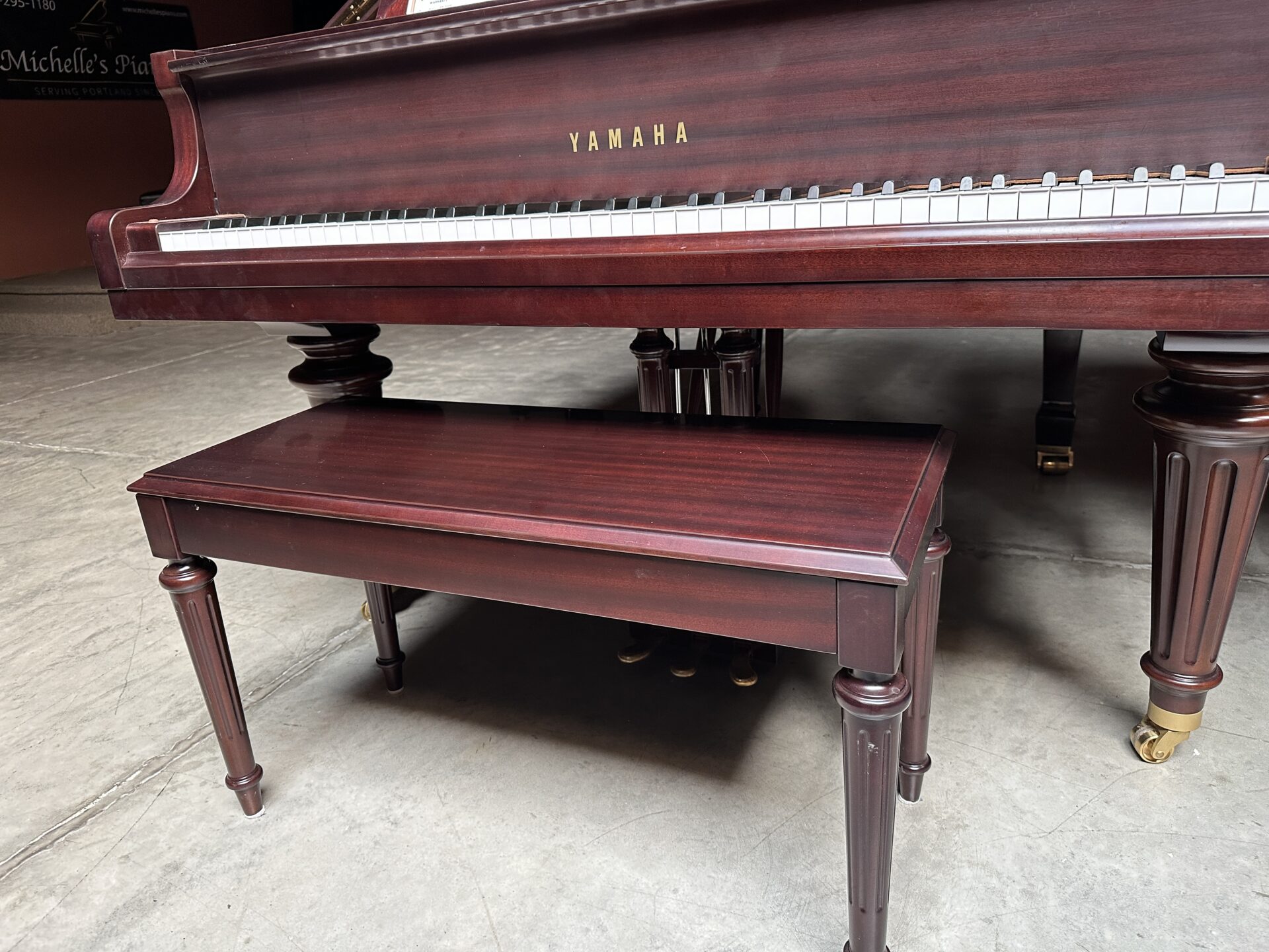 This is a one owner Yamaha in excellent shape, the cabinet is in the beautiful mahogany satin finish, it looks great and free of damage. The piano had very little use, and it looks inside and out like a new one. The action responds with quickness and is easy to control, the sound is rich with deep bass. The piano has been inspected and certifed by our technicians, it has been cleaned and tuned.