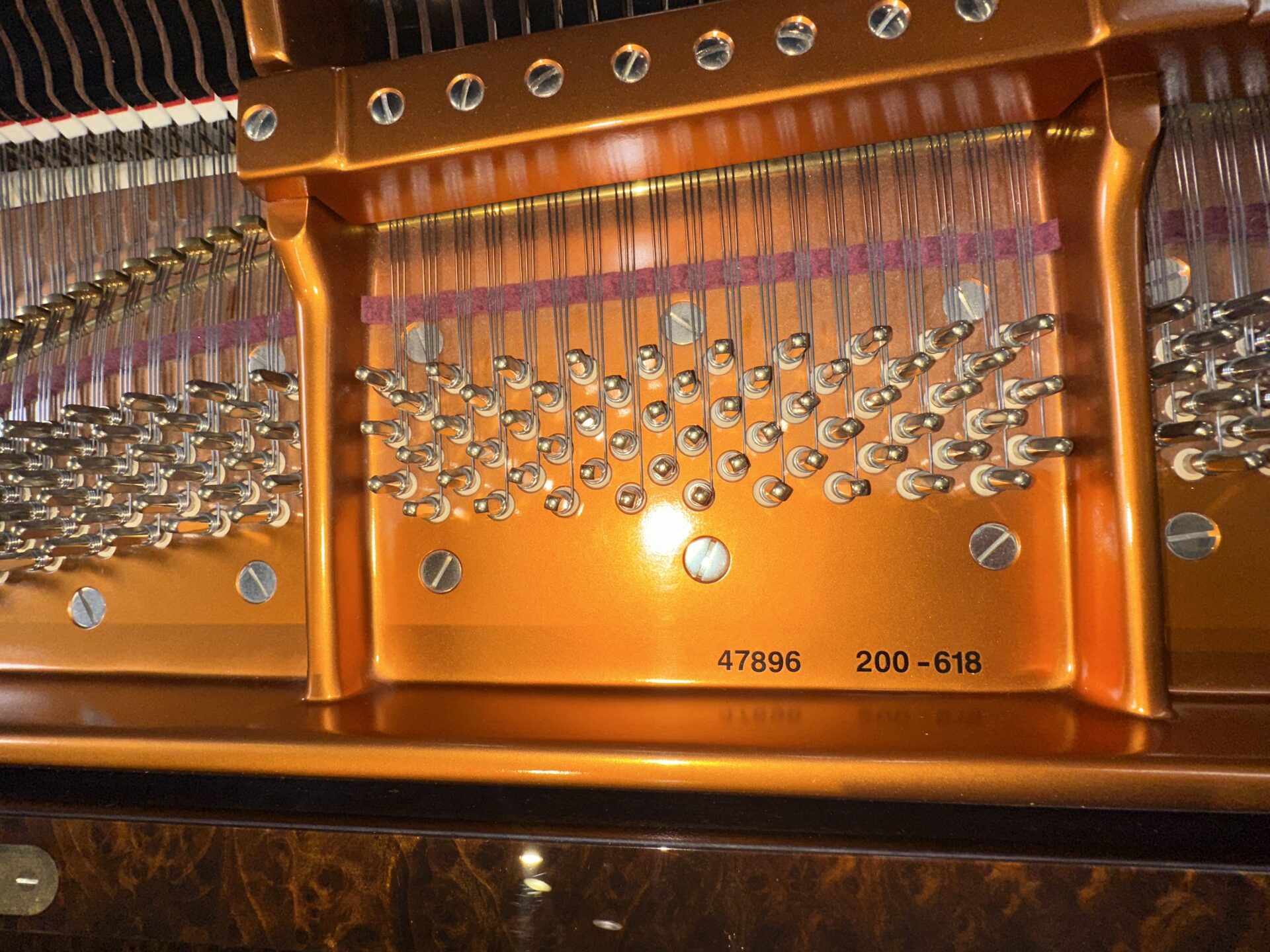 This is a one owner piano Bosendorfer model 200 designer series, this piano has been custom made with special cabinet design in the rare Amboyna finish, the cabinet is stunning with a designer music desk and a unique lid prop. The piano has very little play it has been at a private residence in a special music room, it has been tuned and serviced regularly and has all the original components and parts. The piano has the famous German Renner action that responds to the lightest touch and allows the player to creat wide dynamic range and multiple color.
