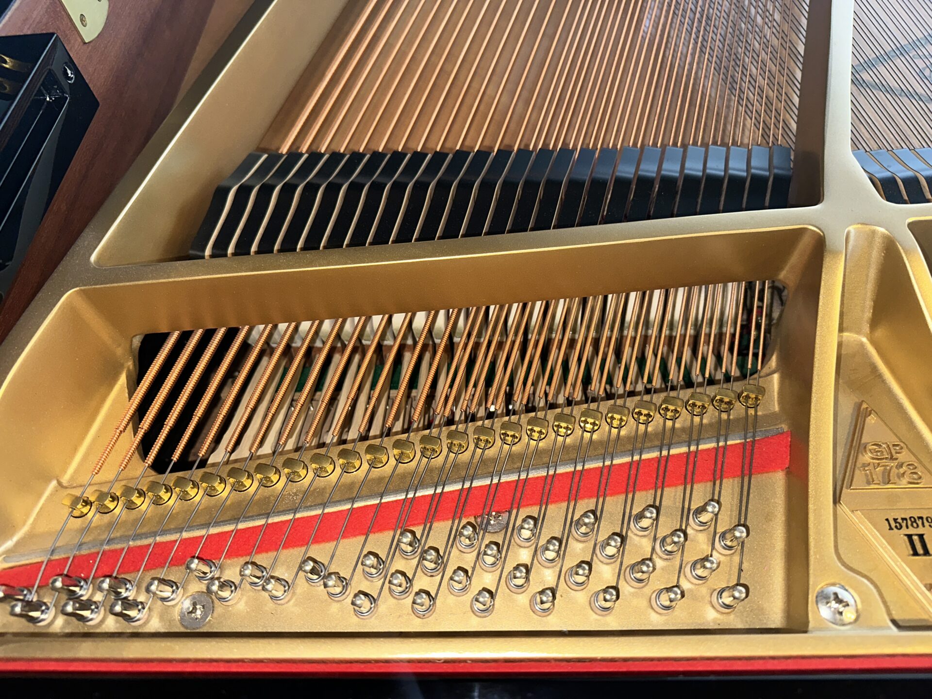 This is a one owner piano in excellent condition, the cabinet is in the popular ebony polished finish and is in great shape with no damage. The piano has rich tone with powerful bass and clarity in the treble, the action responds with great accuracy to the lightest touch, it is very easy to play and control and produce wide dynamics and multi color. The piano has been inspected by our technicians, it has been cleaned and tuned.