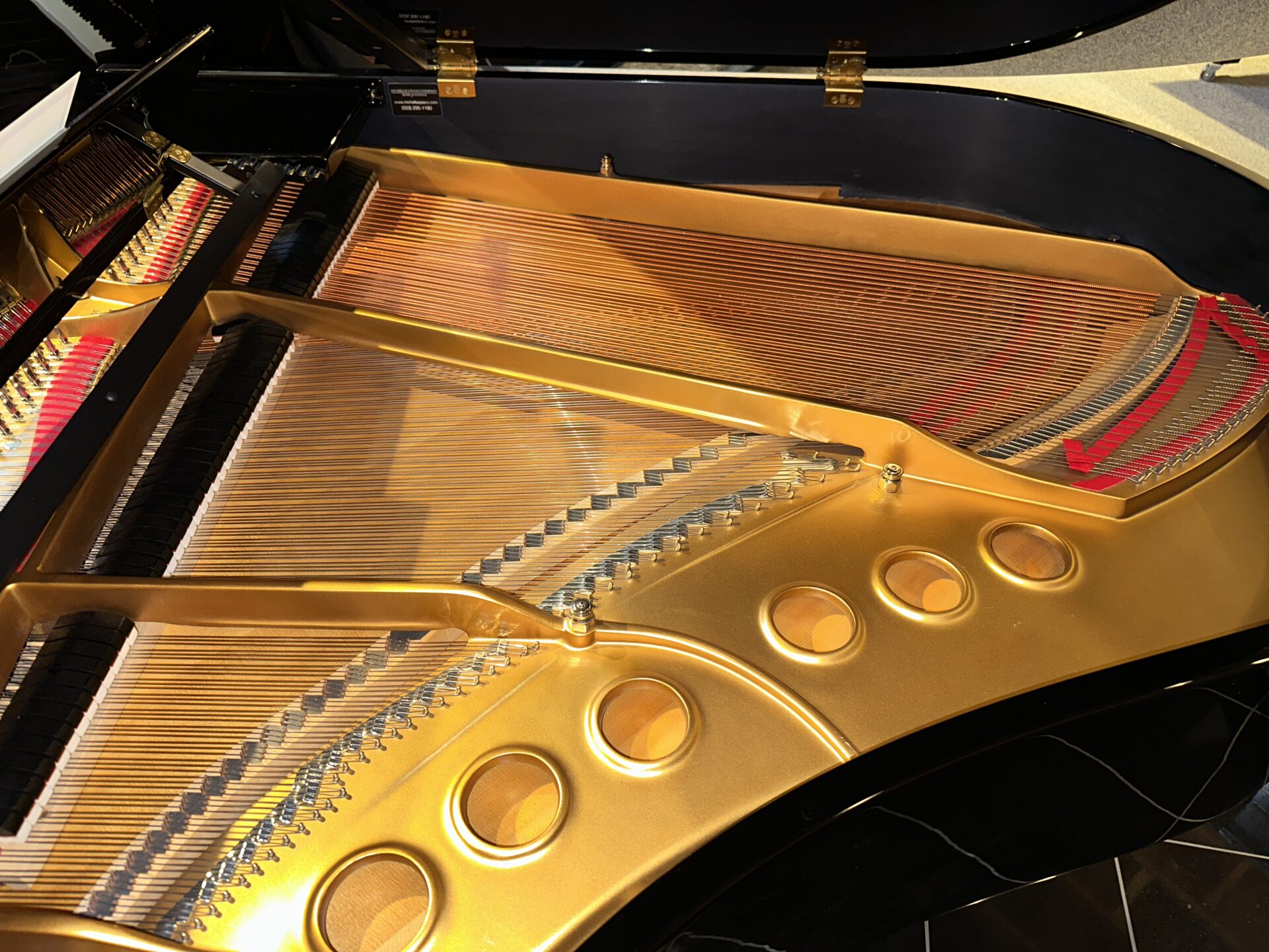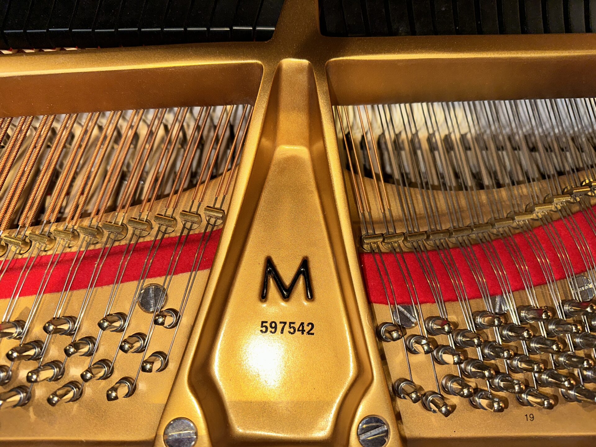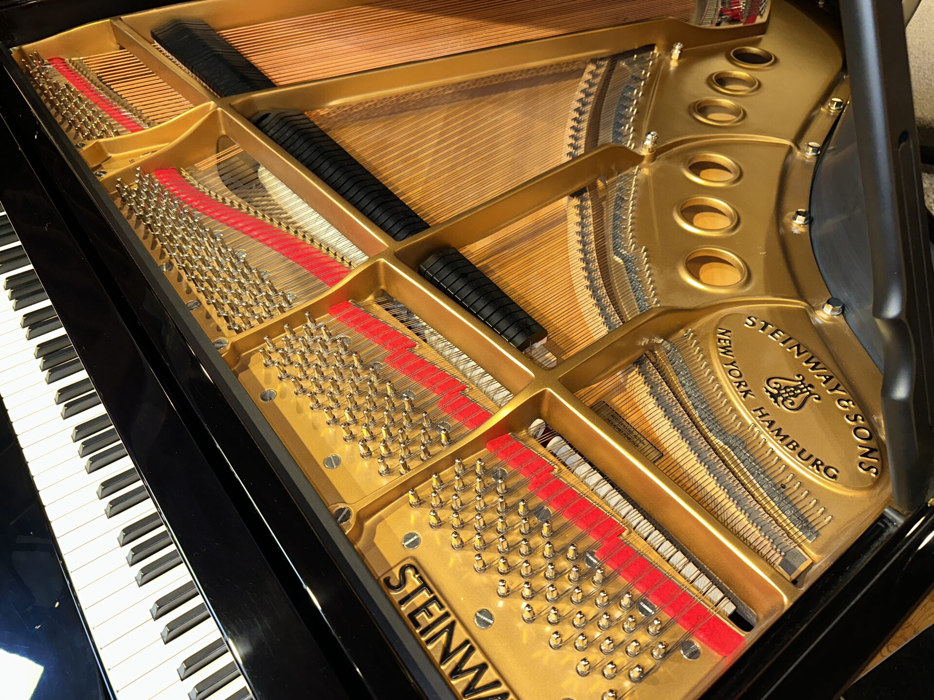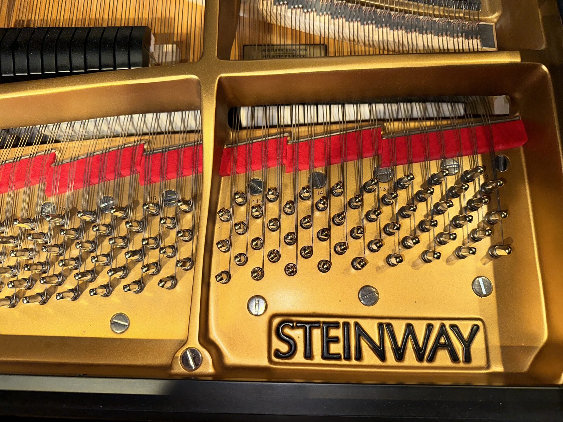 This is a one owner piano purchased new from the local Steinway dealer in 2014, it was used very lightly, serviced and tuned yearly. This 5’7″ grand Steinway is in the ebony polish finish, the cabinet looks like a new piano and free of any damage. The action is quick, it responds to the lightest touch and is easy to control, the dynamics are rich with the ability to create multiple colors and effects. It also has the original Steinway artist bench which is adjustable with the Steinway logos on the knobs.