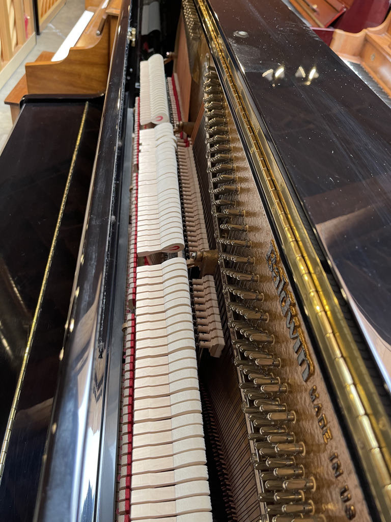 This is a one owner piano in excellent condition, it is handcrafted in the US with spruce soundboard and heigh quality material. The piano has a big sound rich in the bass and clear in the treble. The action is quick and responsive to the lightest touch, the cabinet is in the beautiful ebony polish finish and free of damage.